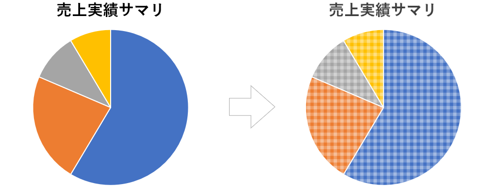 左側の資料のタイトルとグラフにパターン画像をかぶせました。